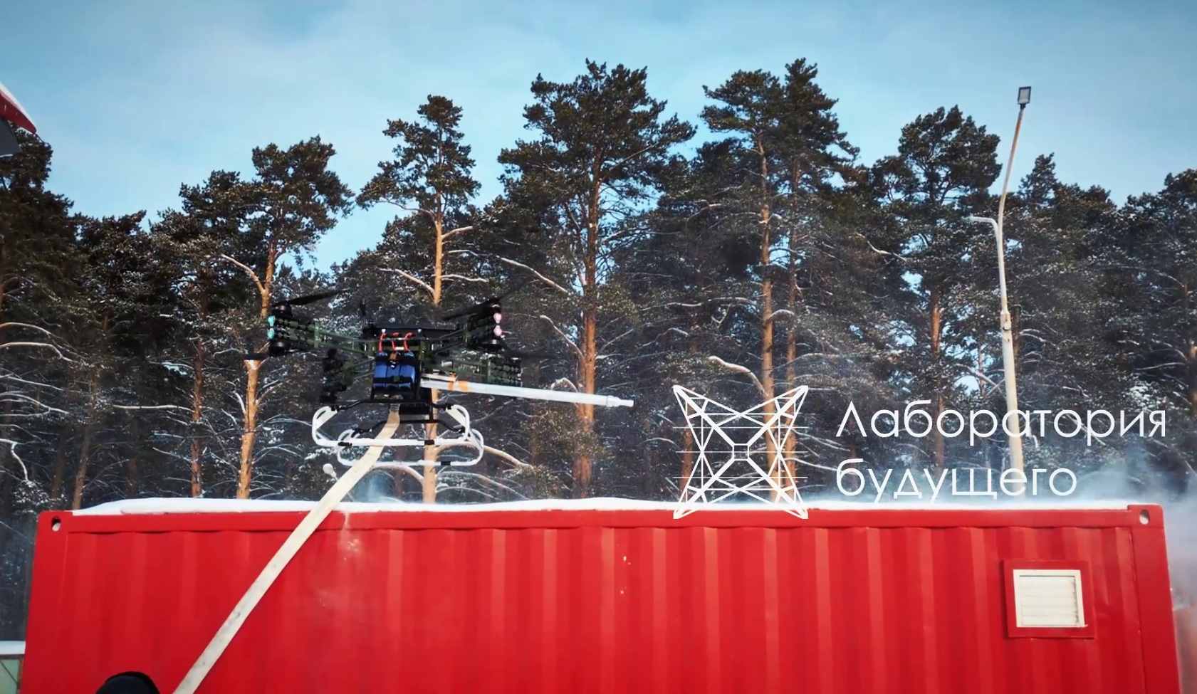 Главной задачей пожарного дрона "Грузовик М-500" – перспективной разработки компании "Лабораторий будущего" – стала ликвидация возгорания в резервуаре с горючей жидкостью.